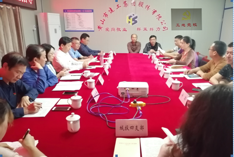 朱书记一行人员一到工地,就奔赴施工现场调研,并认真听取了项目施工情况的介绍,他要求在确保安全的前提下要加大施工机械设备投入,加班加点,合理安排工序衔接,保质保量的加快施工进度,尽早为业主提供一个满意的工程。随后步入“工地党校”进行了交流座谈,先后听取了“工地党校”组织情况介绍、项目建设情况介绍、项目施工情况介绍等。朱书记以《中国共产党支部工作条例(试行)》为党课内容进行了专题讲座。