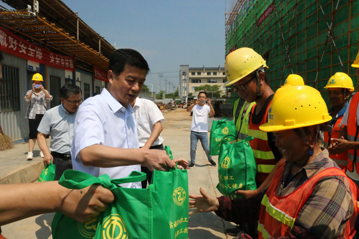 在项目施工现场,区委书记吴旭光代表区委区政府向在高温下作出辛勤工作的工人们表示深深的敬意,将防暑降温物品送到他们手中,并叮嘱他们要劳逸结合,注意身体健康。并要求项目部要科学安排作息时间,制定高温应急预案,加强施工现场安全管理,确保高温时期工地安全生产形势稳定。