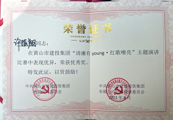 为庆祝中国共产党成立102周年,深入推动学习贯彻习近平新时代中国特色社会主义思想主题教育,全面贯彻落实党的二十大精神,8月18日,由黄山建投集团举办的“清廉有young·红歌嘹亮”主题思政课隆重举行,参赛选手以生动的语言、动听的歌声、真挚的感情为大家带来一场别开生面的视听盛宴,开云网页版登录入口-开云online(中国) 青年员工许振翔在思政课演讲比赛中取得优胜奖。