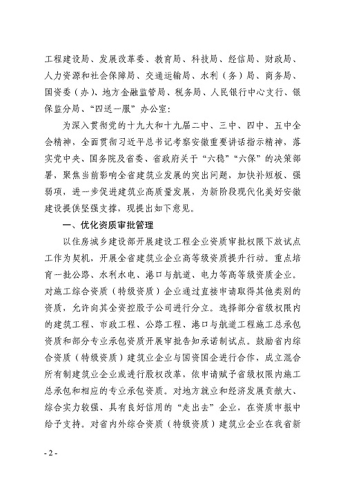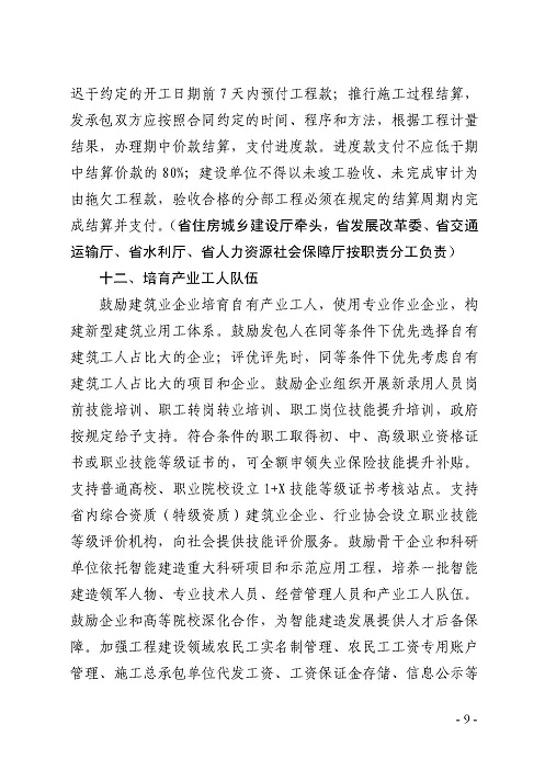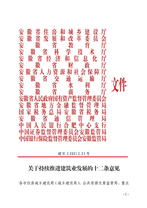 关于持续推进建筑业发展的十二条意见